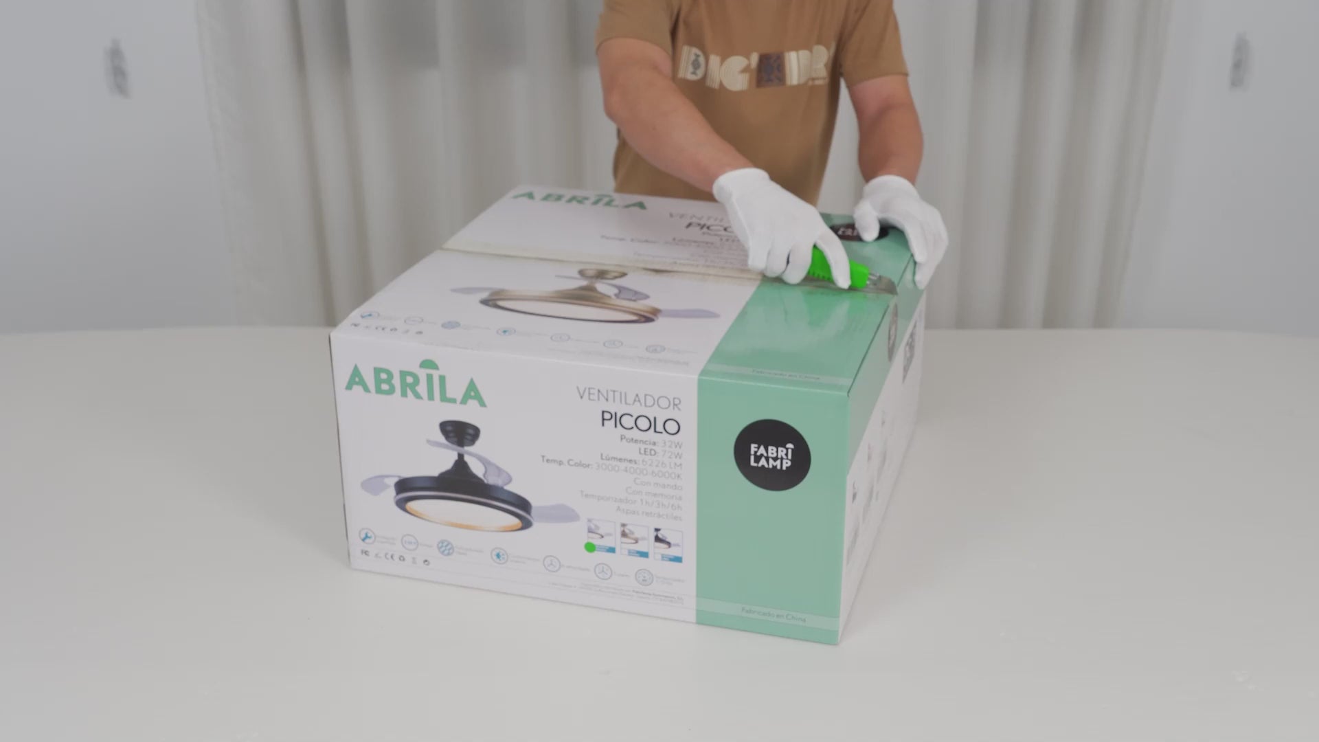 With the DC Picolo Fan , Fabrilamp / Abrila offers a superior user experience thanks to its remote control, color memory and timer. Its DC motor guarantees quiet operation and low energy consumption. Discover the quality and innovative design of Fabrilamp / Abrila at LUZGURÚ . The DC PICOLO fan made of metal, polycarbonate and ABS, in WHITE / BLACK with three very resistant transparent ABS FOLDABLE blades. It has six adjustable speeds. Integrated LED technology with a power of 72W, with 3 SELECTABLE LIGHT TEMPERATURES (3000-4000-6500K) and 6226 lumens. Summer or winter air control. Its measurements are 38/50.5X49.5 centimeters with the blades folded and 38/50.5X106 centimeters with the blades unfolded. Includes two 12.5 and 25 cm stems, for different heights. Remote control INCLUDED with built-in COLOR MEMORY and 1/3/6 HOUR TIMER.