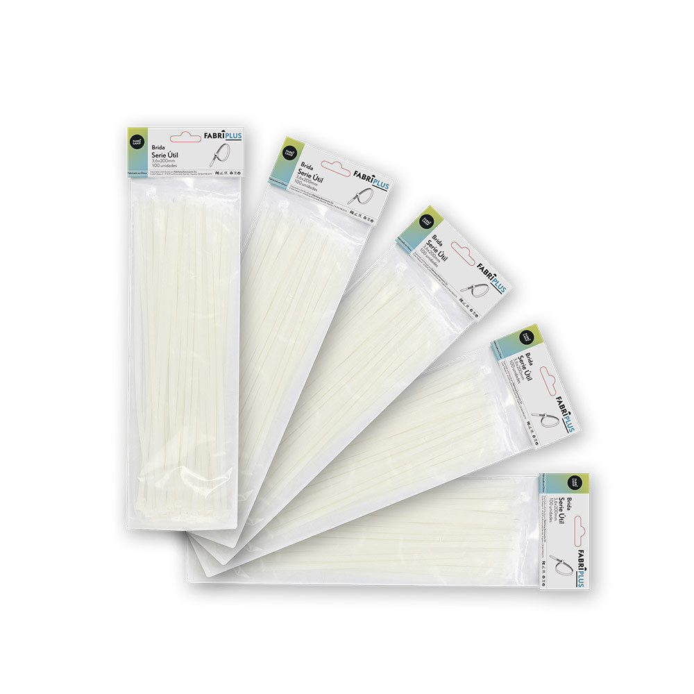 Estas bridas de la serie UTIL no buscan ser decorativas; su diseño es pura funcionalidad. Fabricadas en 100% Nylon 66, un polímero de alto rendimiento, presentan un color blanco estándar que facilita su identificación en entornos de trabajo. Su estructura rectangular, con una medida de 3,6mm de ancho x 200mm de largo, está optimizada para una sujeción firme y uniforme. La ausencia de acabados complejos se traduce en un producto robusto, cuya estética minimalista se centra en cumplir su función de manera eficiente y duradera.