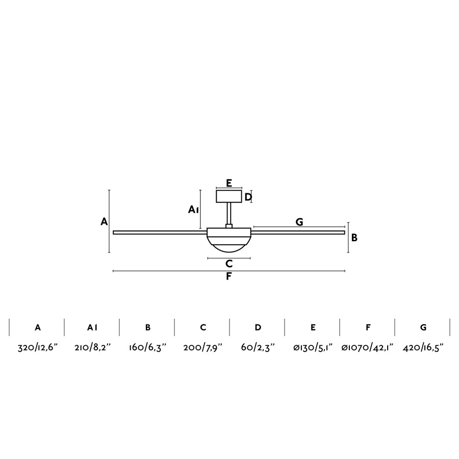 El ventilador FEROE S es ideal para habitaciones de hasta 13m2. Su diámetro de 107 cm proporciona una cobertura adecuada para espacios medianos, asegurando una ventilación eficiente.