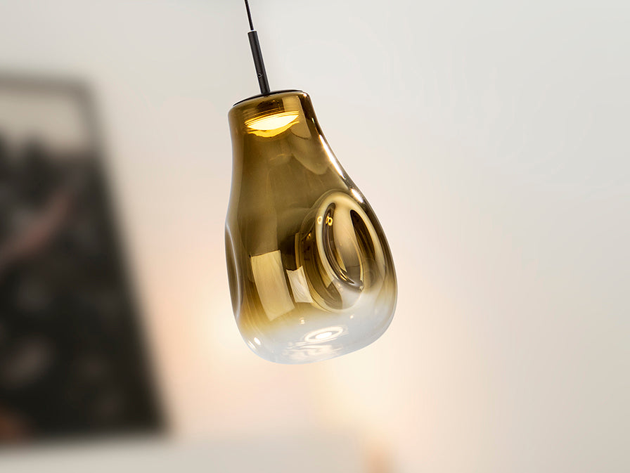 - Tulipa cristal soplado dorado difuminado: Luz cálida y envolvente que transforma cualquier rincón en un espacio premium.
