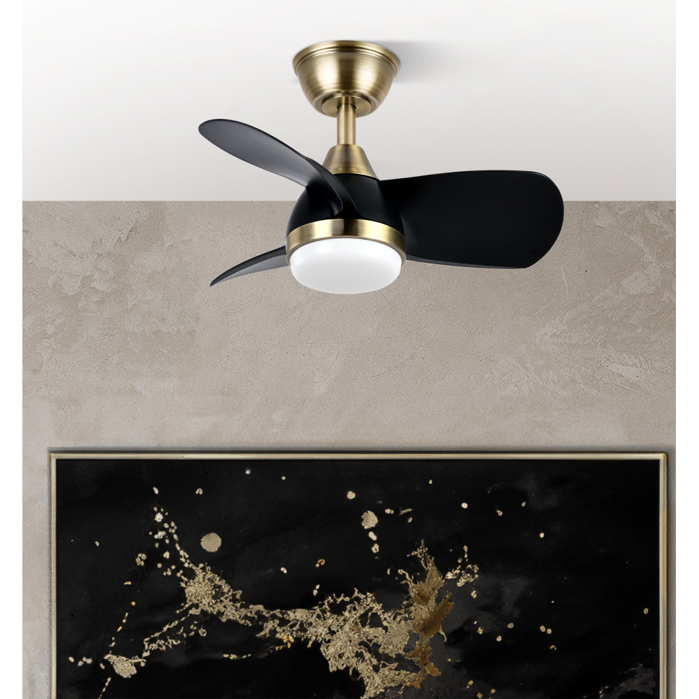 El diseño del PIRDO es un estudio en minimalismo funcional. Su estructura principal está construida en metal con un acabado en color cuero/negro, aportando una estética moderna y discreta. Los componentes secundarios, como las aspas y la carcasa del motor, utilizan ABS y policarbonato en el mismo tono, garantizando durabilidad y un peso ligero de solo 3.23 kg. Su forma circular de 60 cm de diámetro y su perfil bajo (de 35 a 47 cm de alto, según la tija elegida) lo integran armoniosamente en techos de cualquier altura, especialmente en habitaciones donde el espacio es valioso.